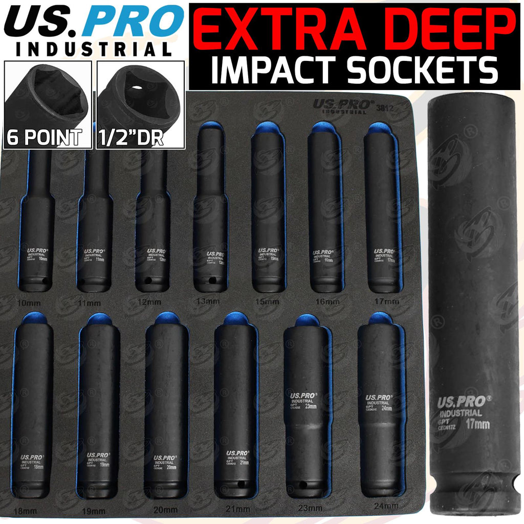 - 13 PIECE 1/2" DRIVE 6 POINT EXTRA DEEP IMPACT SOCKET SET