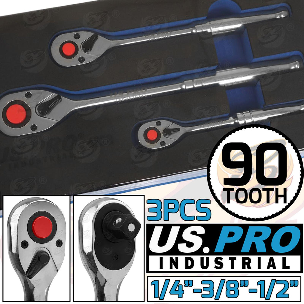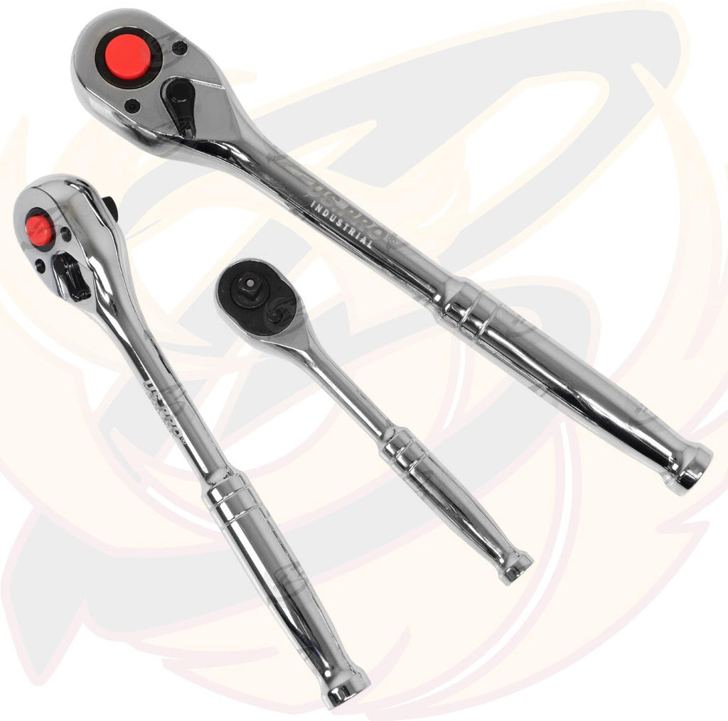 - 3 PIECE 90 TOOTH MIXED DRIVE RATCHET HANDLES