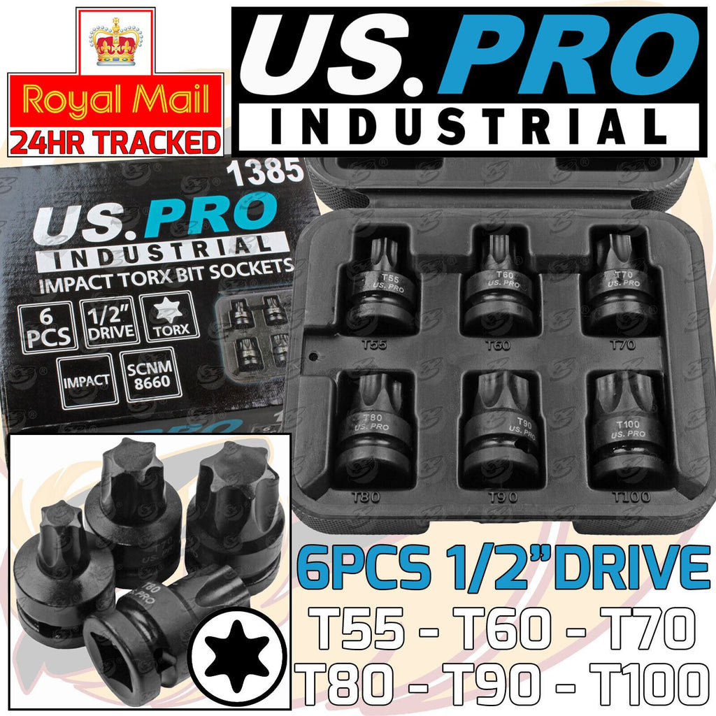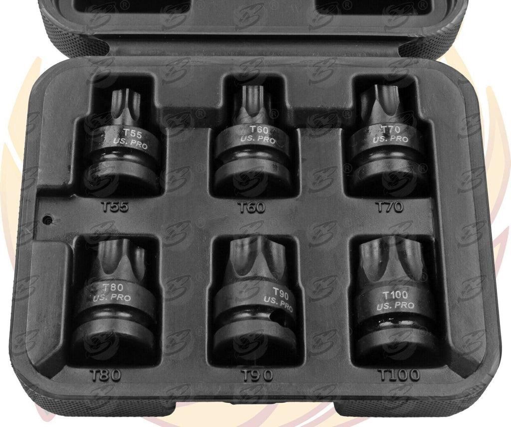 - 6 PIECE 1/2" DRIVE IMPACT TORX BIT SOCKET SET T55 - T100