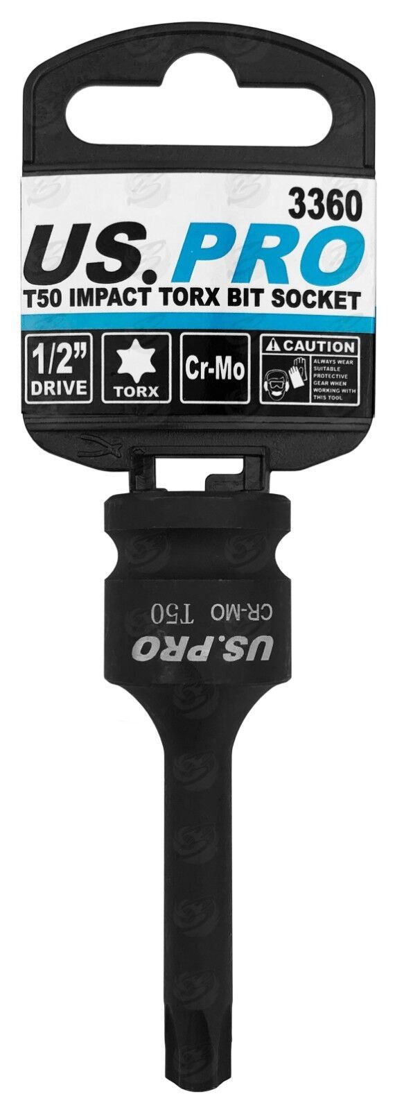 QUALITY TOOLS.AUTOMOTIVE RANGE.MADE TO THE HIGHEST STANDARDS.US.PRO By BERGENPROFESSIONAL QUALITYCHROME-MOLYBDENUM ALLOY STEEL DIN3121IMPACT T50 1/2" Dr TORX Bit Socket