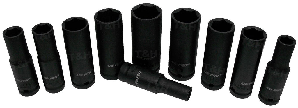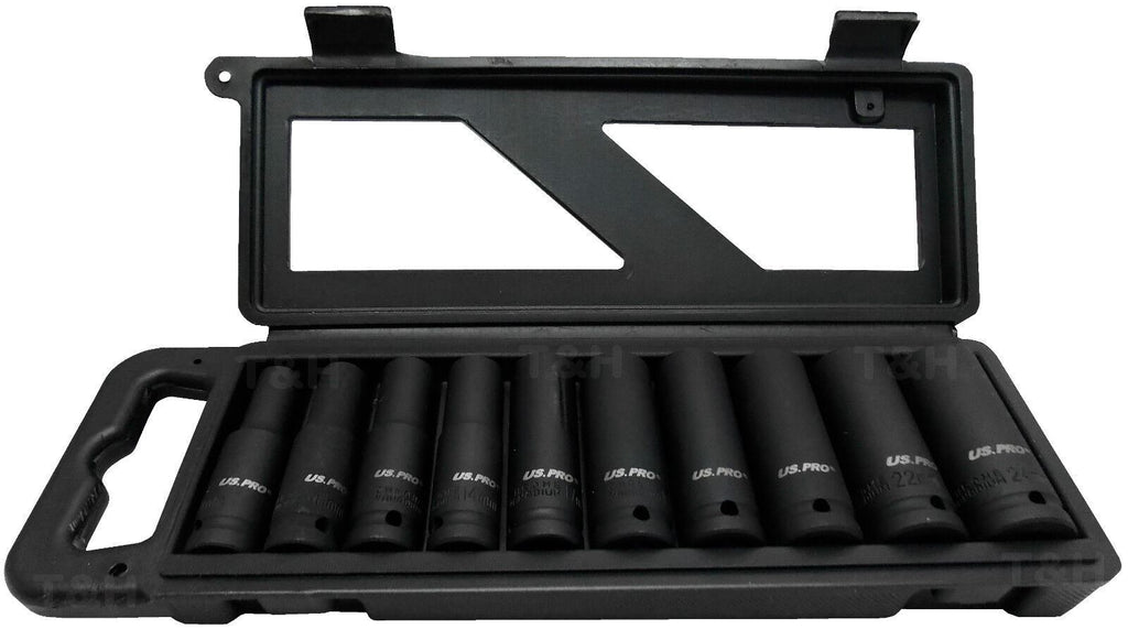 US PRO 10PCS 1/2" DRIVE 6 POINT DEEP IMPACT SOCKETS ( 10MM - 24MM )
