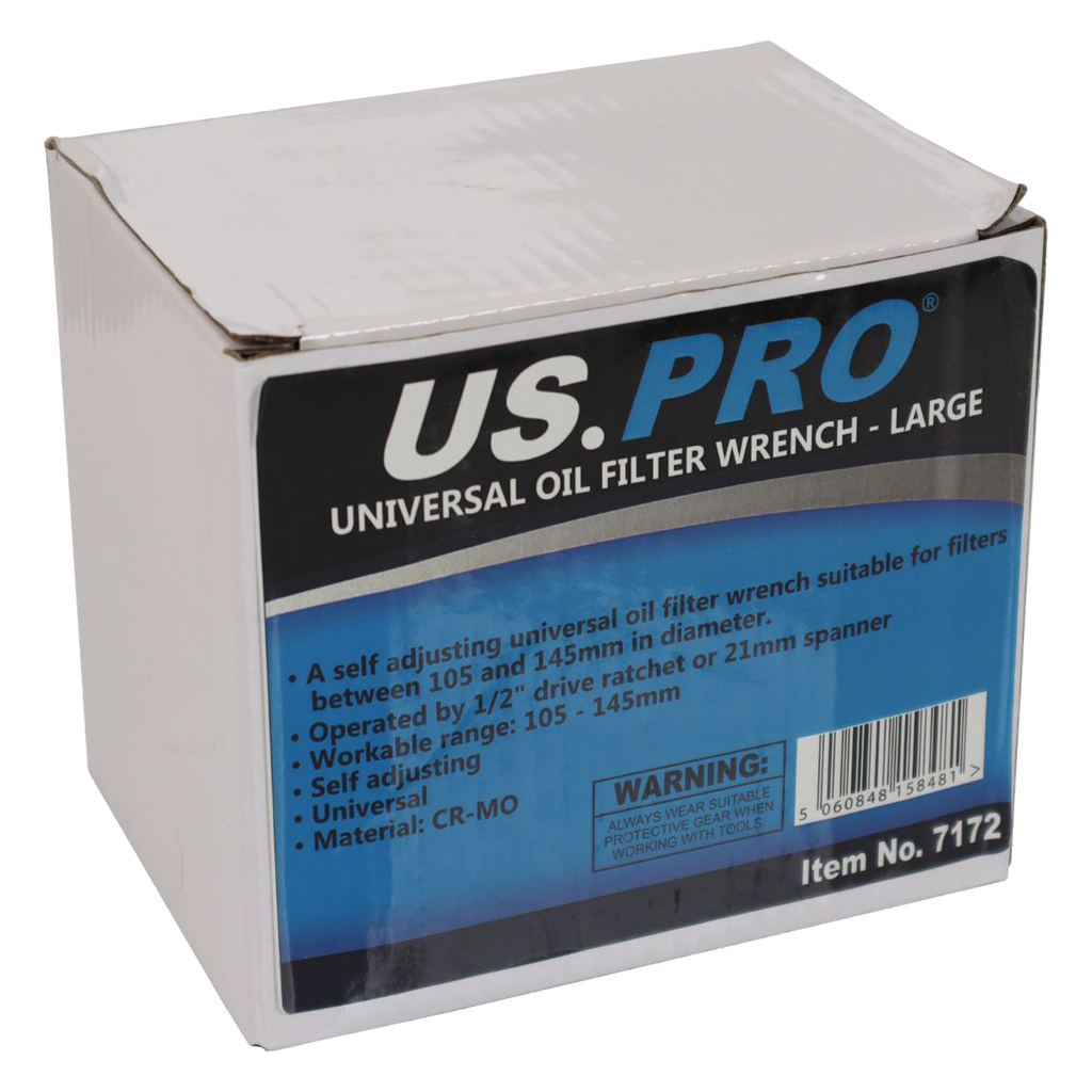 A self adjusting universal oil filter wrench suitable for filters between 105 and 145mm in diameter.